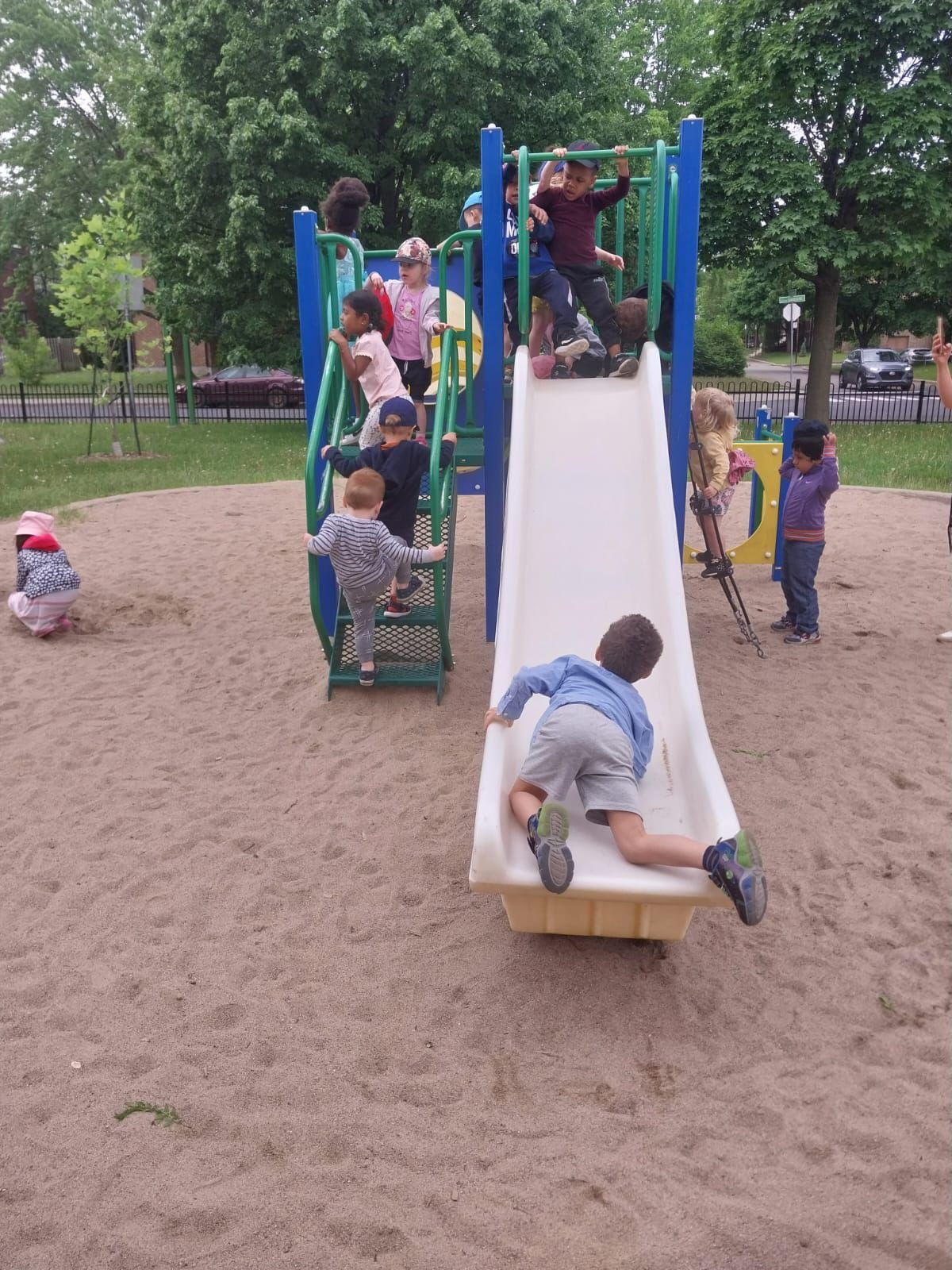 Des moments en plein air dans notre cour sécurisée pour jouer, explorer et développer la motricité à travers des jeux et activités en groupe.